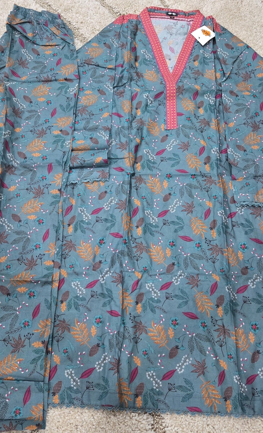 A comfortable 2 Piece cotton cord set. Embroidery work throughout the top and pant.