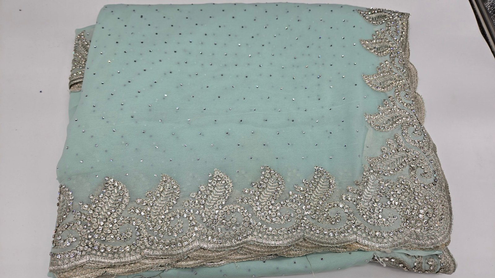 Mint Stone Work Saree