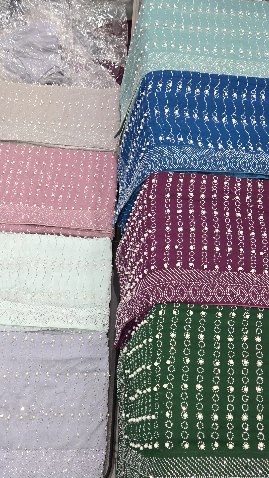 Stunning Pearl Georgette saree that comes in 8 different colors with a ready made blouse.
