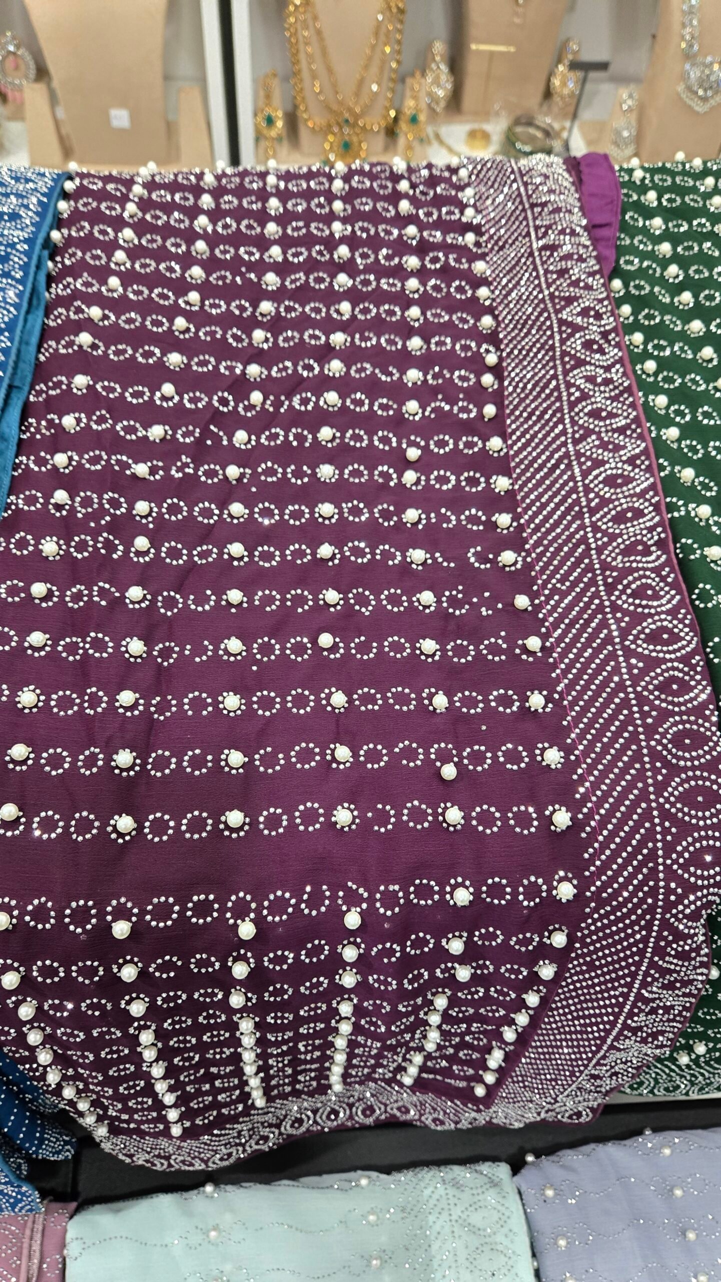 Stunning Pearl Georgette saree that comes in 8 different colors with a ready made blouse.