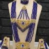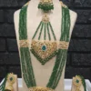 Semi bridal mala set. Comes with long mala, earrings with sahara, tikka and jhumar. Handmade with stone work and hydra beads.